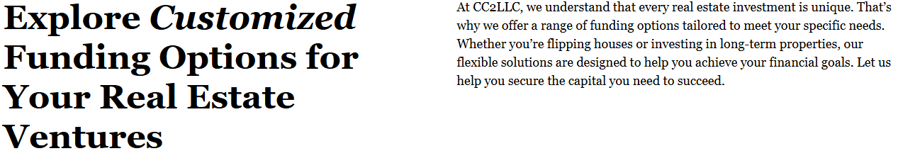 Send us an email with your contact information and we can start the process. If you have a deal under contract and need help with funding, drop a line. Let's see what needs to be done to make your dream a reality.